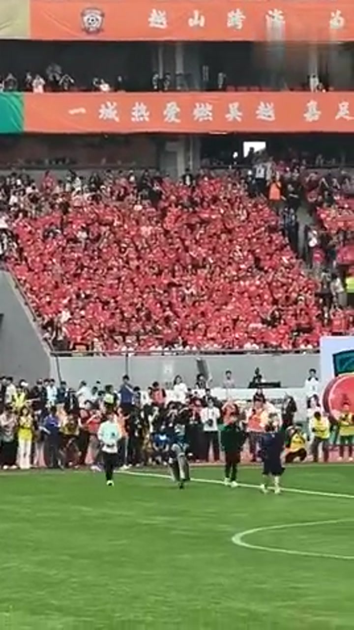 王钰栋和机器人冲冲为吴越杯揭幕战开球