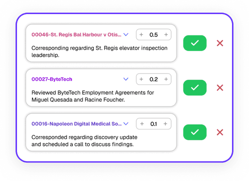 Review your entries with a single click, make any adjustments, and sync to your billing system.