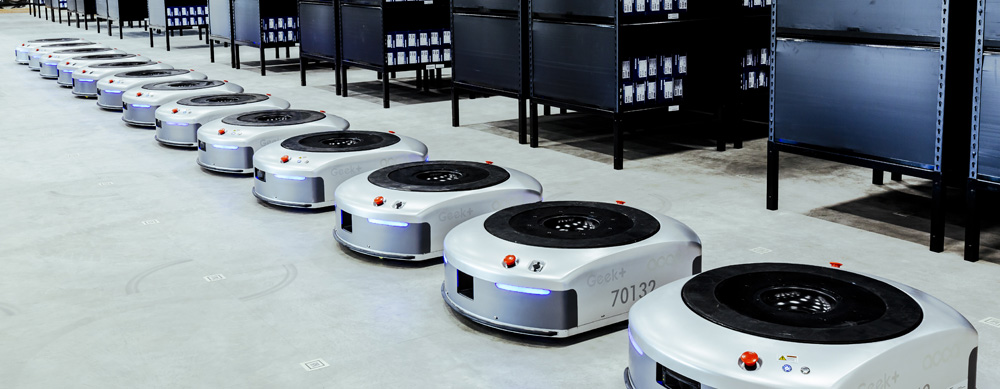 「Geek+(ギークプラス、極智嘉)」は中国国内の物流ロボットを代表する企業で、2015年の創業以来、全世界で1万台以上のロボットを販売してきた。取引先は全世界約20カ国・地域の200社以上に及び、日本とアジア太平洋市場(中国を除く)で80%以上のシェアを誇る。業務内容は、物流ロボットにとどまらず、スマート工場や無人倉庫ソリューションの開発でも事業展開を進めている。