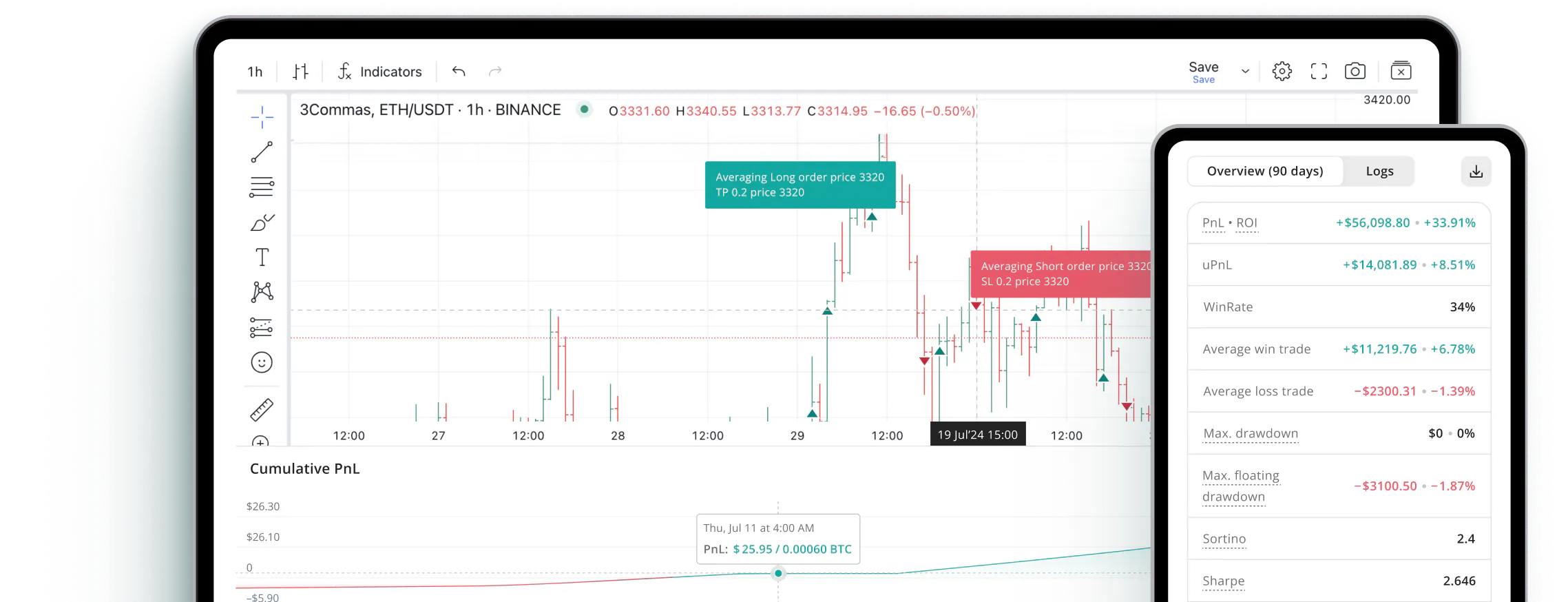 Backtesting is key to build a strong strategy. 3Commas delivers a full toolkit to test, refine, and bulletproof your trading strategy before it hits the market.