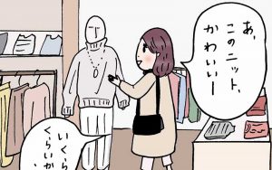 働く女性の“あるあるネタ”を4コマ漫画でお届け。人気イラストレーター・村澤綾香さんによる描き下ろしの毎週土日月の連載です。今回の話は、ニットの値段。