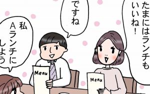 働く女性の“あるあるネタ”を4コマ漫画でお届け。人気イラストレーター・村澤綾香さんによる描き下ろしの毎週土日月の連載です。今回のお話は、定食屋での出来事。