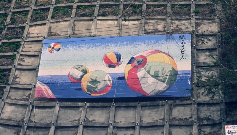 (PC-98のギャルゲーみたいなエフェクトの「紙ふうせん」。出雲崎は紙風船が特産品です)