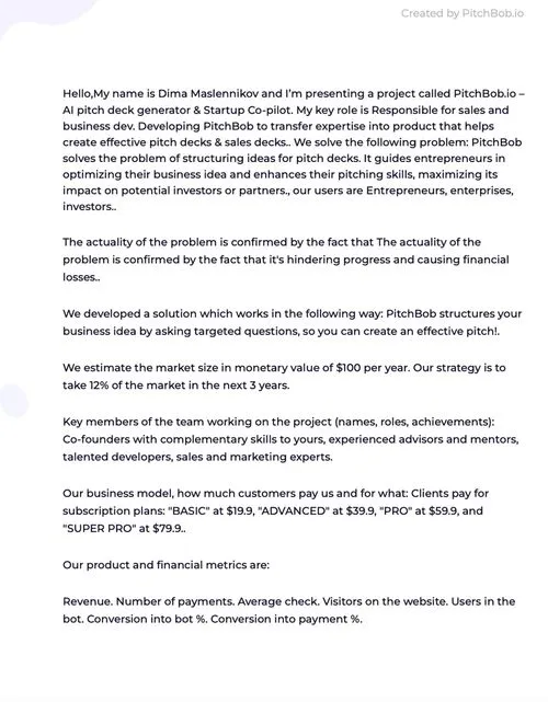 Gerador e co-piloto de pitch deck AI para empreendedores