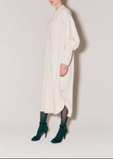 2026 Spring Collection“Soft Geometry” — ソフト・ジオメトリー直線と曲線、構築と柔らかさ。相反するエレメントが交差することで生まれる、新しい均衡の美。リネンやコットンをベースに、軽やかに揺れるオーガンジー、繊細なレースをレイヤードした透明感のあるテクスチャー。シャープなカッティングの中に、柔らかなドレープや透け感を忍ばせ、構築的でありながら、しなやかな空気を纏うデザイン。レースは甘さではなく、“線の美しさ”として存在し、光を受けて浮かび上がる幾何学のリズムが、クリーンなフォルムに静かなフェミニティを添える。“Soft Geometry”──理性と感性のあいだに生まれる、モダンで穏やかな強さ。軽やかに、そして静かに際立つ、春のエレガンス。2026 SPRINGは柔らかさの奥に、芯のある美しさを表現した商品群になります。Designer 小島直子 Room no.8 | BLACK Room no.8 R8O-216-1700 / RYN PRT GATHER DRESS R8KN-293 / SHEER TRICOLR V/N C/GN YRC-001-30426 / CORD LINEN SNAP DOT...