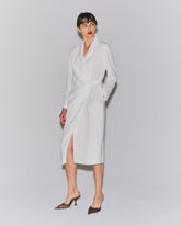 シーズンレスで叶う美シルエットワンピース 程よいハリと柔らかさを兼ね備えたエアジャージー素材。ハイウエスト切り替えで自然にスタイルアップが叶う、シャツ×スカートのような美シルエットドレスをご紹介。着用サイズ:3 ⚫︎ヤク100%ニットhttps://room-no8.com/products/air-jrsy-shirts-dress テーラード×ドレープで完成する、大人の洗練ドレス トリアセテートのジョーゼット素材を使用。テーラードカラーとアシンメトリーなドレーピングで、凛とした大人の女性像を演出する一枚です。着用サイズ:2 ⚫︎ジョーゼット ラップドレスhttps://room-no8.com/products/georgette-wrapped-dress