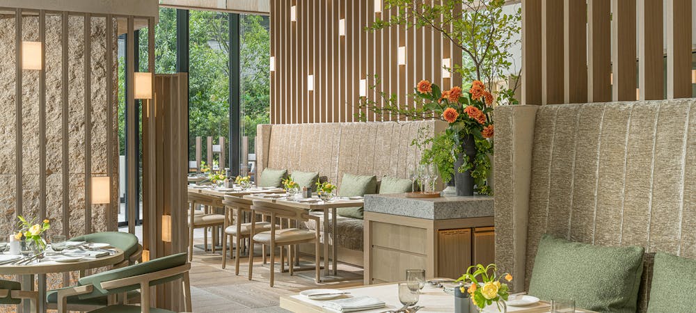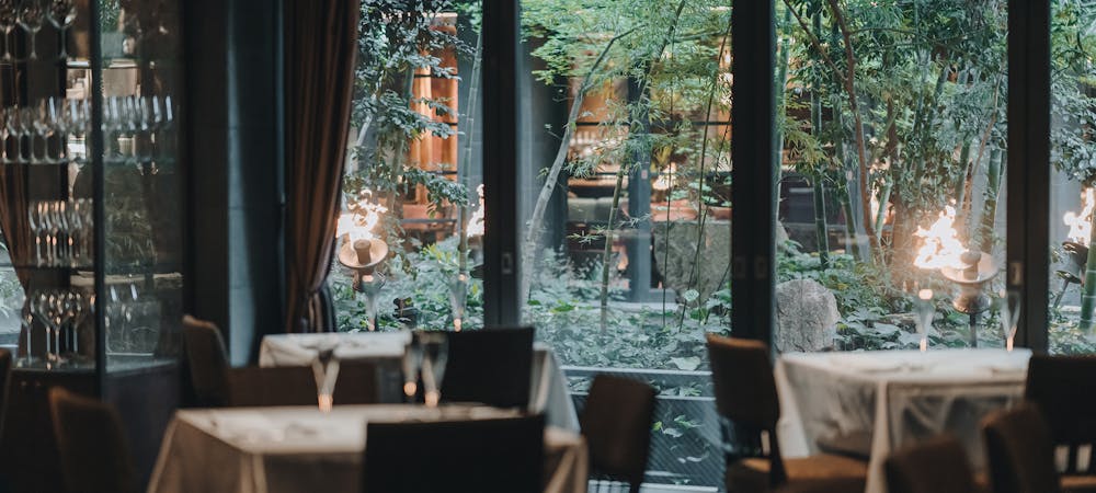 店名の「by the green」には、「表参道のケヤキ並木のそばで、大人の上質な時間を過ごせるように」という想いが込められています。 思いがけない食材や色彩を組み合わせたアーティスティックなメニューを 四季折々の表情を見せるケヤキ並木のそばでお愉しみください。