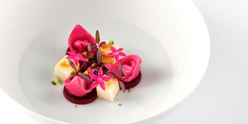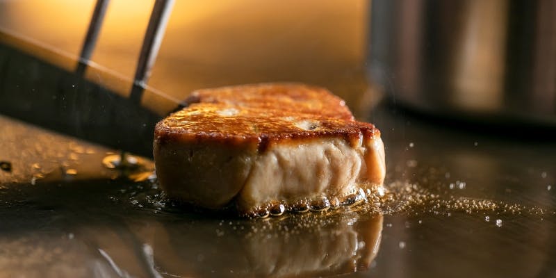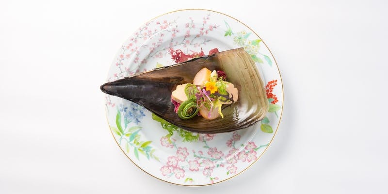 一品目はフランベしたフルーツトマトをガレットで包み、スライスした最高級生ハムを添えてお召し上がりいただきます。 前菜は香りづけのためにスモークに包まれ、提供後にスタッフが目の前で蓋を開けさせていただきます。 視覚・聴覚・嗅覚でお楽しみいただく匠オリジナルメニューをご提供いたします。 また、料理に合わせて厳選した世界各国50種以上のワインもご用意しております。その絶妙なマリアージュを上質な空間と共に、夢心地の時間をお過ごしください。 ※前菜はコースによってご提供が異なります。