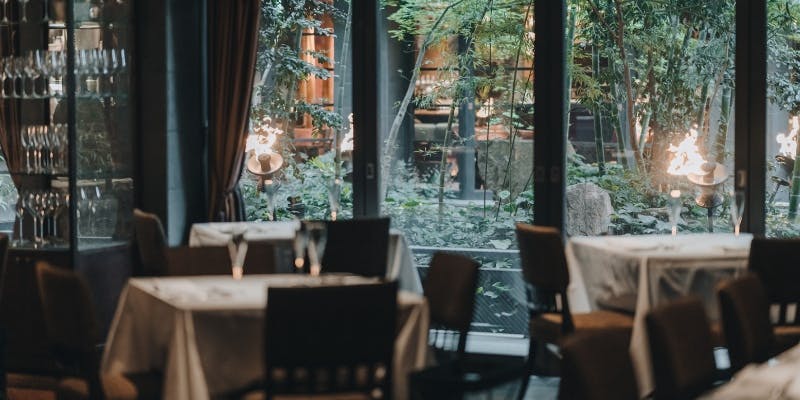 名古屋の都心に居ることを忘れてしまいそうな、緑、水、風、光を感じる、自然に囲まれた空間でゆったりとお食事をお楽しみいただけます。テーブル席のほか、個室(2部屋)、バーエリア、テラス席を設け、様々なシーンでご利用いただけるレストランです。