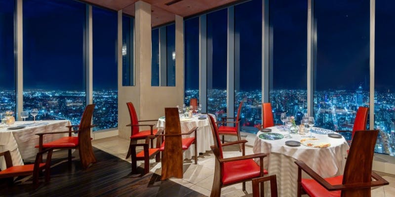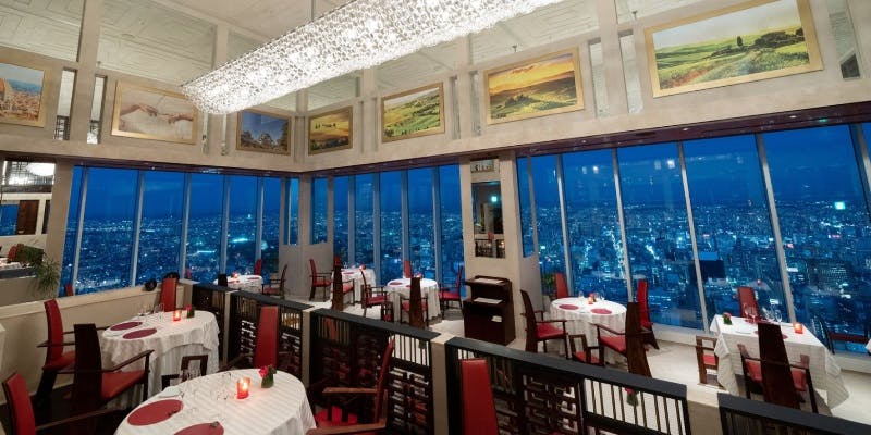 お口取りからデザートまで、目も舌でも楽しめる料理の数々をご用意します。 地上52階からの絶好のロケーションとアール・ヌーボーの優雅なインテリアに囲まれてのひとときをご堪能ください。 ランチ 12,500円