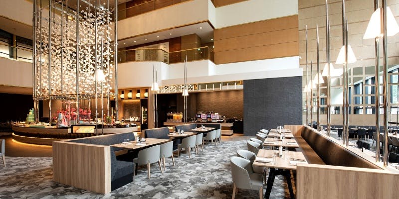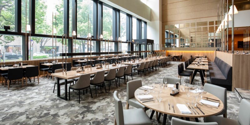 ホテルの吹き抜けに位置し、大きな窓から太陽光が降り注ぐ、国際的に著名な建築デザイナーが手掛けた店内では、都会的かつモダンでありながらも、開放的な気分でリラックスした時間をお過ごしいただけます。
