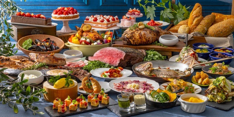 ホテルシェフがつくる季節の料理やスイーツの数々はもちろん、目の前で仕上げるパフォーマンスメニューもブッフェスタイルなので食べ放題。好きなメニューを好きなだけ食べられる非日常の食体験をお楽しみください。