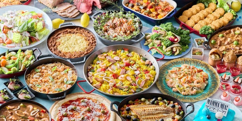 劇団四季 ミュージカル「マンマ・ミーア!」 名古屋四季劇場にて2月23日(月・祝)まで期間限定公演! カップル、家族、友達、同僚と、誰と来ても「美味しい・楽しい」ブッフェを提供するシェフズ ライブ キッチン。 ホテル開業10周年企画第一弾は、劇団四季 ミュージカル マンマ・ミーア! とコラボレーションした地中海フェアを開催いたします。 ローストポーク、天麩羅など人気のメニューに加え、パエリアやシーフードカレー、小エビのクリームパスタなど、定番の地中海グルメもご用意。 さらに、マンマ・ミーア! の登場人物や情景をイメージした、シェフとパティシエこだわりのコラボレーションメニュー6品が登場します。 劇中の舞台でもあるギリシャの郷土料理 ムスカ や スブラギ を大胆にアレンジしました。 スイーツコーナーには、爽やかなギリシャヨーグルトの味わいとエーゲ海の透き通る海をイメージした「ギリシャヨーグルトのムース」をはじめ、旬のいちごとチョコレートをたっぷり使用した見た目も可愛らしいスイーツ11種をご用意。 食後にはさっぱり楽しめるカスタマイズアイスクリームもお楽しみいただけます。 土日祝限定のキッズコーナーでは、チキンナゲットやミニアメリカンドッグなど、お子様に人気のメニューを取り揃えております。 新年会や新生活などの会社のお集まり、バレンタインのデート、ご友人との女子会など、イベントが多いシーズンのご利用にもおすすめです。 ランチ 5,650円5,000円〜(最大11%OFF)