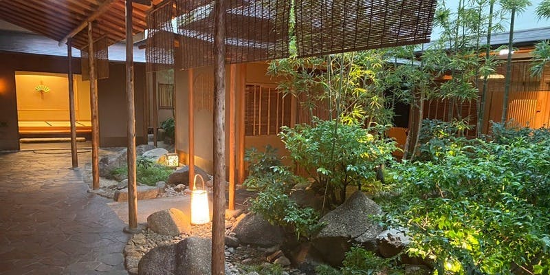 くぐり戸を抜ければ、そこは小京都。石畳や町屋風の個室、風情ある中庭など、名古屋駅直結のホテル内とは思えない景色が広がります。