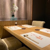 2名様からでもご利用いただける個室をご用意しております。普段のお食事から接待、会食や記念日など特別な日にも是非ご利用下さいませ。解放感に溢れ、職人の鮮やかな手さばきを楽しむカウンター席は7席。おひとり様はもちろん、ご家族やご友人、大切な方とのお食事にぴったりです。