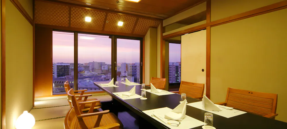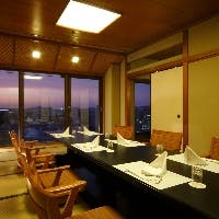 お造り、二段重、揚げ物など、四季折々の食材を日本料理でお愉しみいただく、筑紫御膳コースでございます。最上階の落ち着いた空間で、四季折々の旬の食材をお愉しみくださいませ。 ※4名様以上でのご予約の場合は、個室席をお選びいただく事も可能です。 席の数に限りがございますので、ご注意くださいませ。 ディナー 6,500円5,850円〜(最大10%OFF)