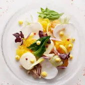 1993年5月20日、福岡に生まれた彼は、幼少期から料理に情熱を抱き、料理の道を志しました。京都の名店「和久傳」で5年間、東京の「銀座 ふじやま」でさらに5年間の修行を重ね、伝統的な日本料理の技術と精神、現代的なアプローチと創造性を学び、磨きました。 現在はザ・リッツ・カールトン福岡の日本料理レストラン「幻珠」の会席料理長として活躍しています。彼の卓越した技術と伝統的な料理は、多くのゲストに感動を与え続けています。 料理人として、彼は食材を自然な形で活かし、食材そのものの味を引き出すことを心がけています。飾りすぎず、目を瞑っても日本の四季を感じられるような料理を目指し、失われつつある日本の食文化や想いを料理という形で表現することに情熱を注いでいます。彼の料理を通じて、日本の豊かな四季と食文化を感じていただければ幸いです。
