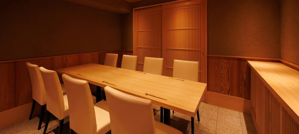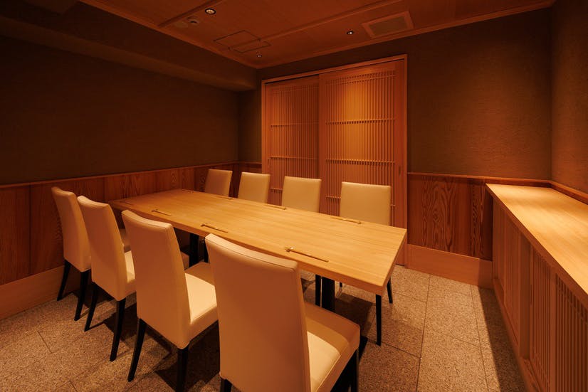 全席完全個室の店内は、壁紙から装飾まで上質な空間として各所こだわり、結納や顔合わせなどお祝いの席や、接待など大切な方をおもてなしされる際に最適です。落ち着いた照明とゆったりとしたお席で上質な空間を演出し、旬を彩るお料理でより一層素敵なひと時をお過ごしいただけます。