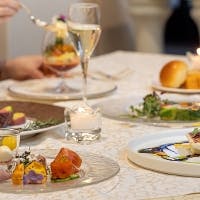 受賞歴を誇るソムリエチームが厳選したスパークリングワインをはじめとする5種のワインに、生ビール、各種スピリッツ、山崎蒸留貯蔵の梅酒、ソフトドリンクまで多彩なラインナップを120分のフリーフローでお楽しみいただけます。さらに、シャンパンのご追加も承り、ひとときをいっそう華やかに心弾む時間へと彩ります。