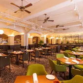 広々とした店内は都内でも最大級の広さを誇り、最大で380名様までご利用いただけるスペースです。忘年会や新年会、歓送迎会など、団体でのご利用でも皆様でブッフェをお楽しみいただけます。また、ご家族でゆっくりとお過ごしいただける片側ソファ席や、東京ドームやアトラクションズの眺望をご覧いただけるテーブル席など、どなた様でもおくつろぎいただけるカジュアルな空間をご用意しております。