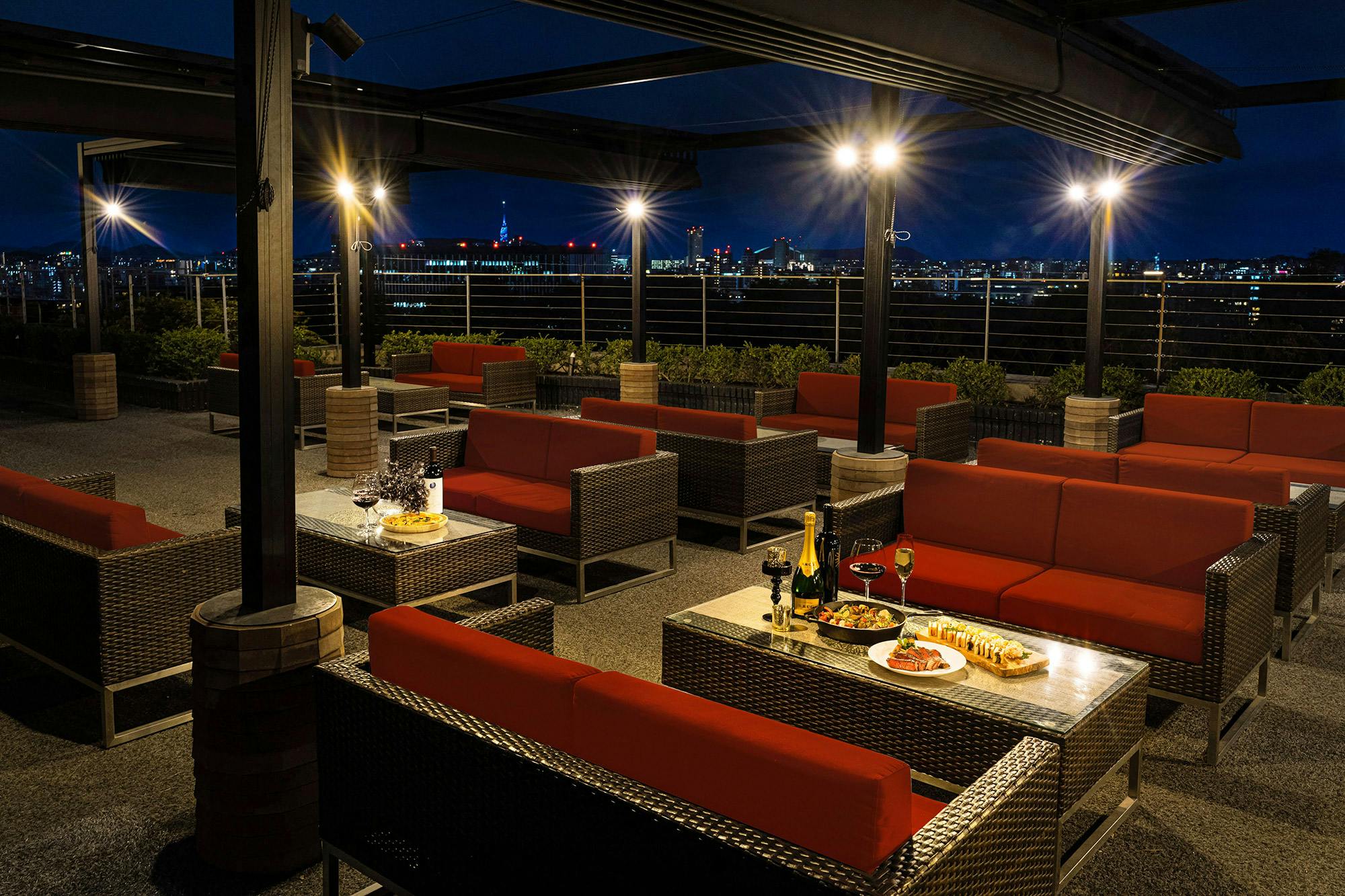 ノース側の海のように広がる眺望のアリーナ席、サウス側の都会的な眺望が魅力のアリーナ席、真ん中のお席のアリーナ席、特別な日を2人で愉しめるサウス側のバルコニー席、眺望を愉しみながら気兼ねなく沢山の人数で楽しめる北側のホスピタリティールーム(個室)を、様々なシーンでご利用いただけます。私たちが目指すサービスは選んでいた使命を感じて、お客様の愉しい時間を演出することです。そして、お客様が愉しまれている時間は私たちにとっても至福の時間です。