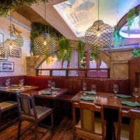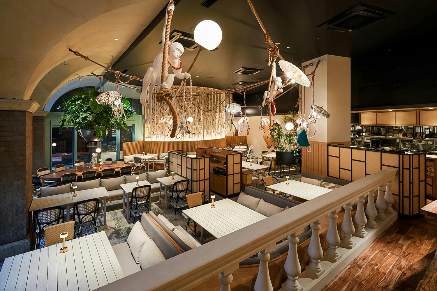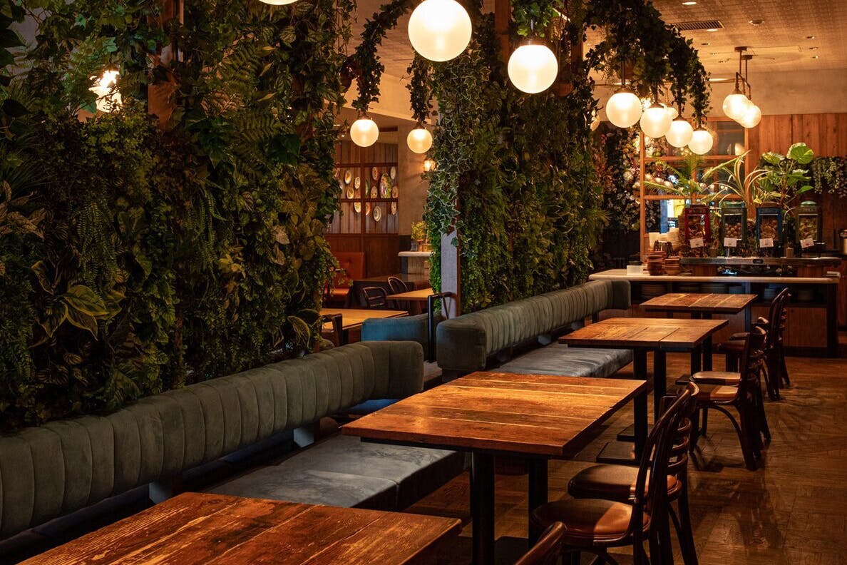 店内は豊かなグリーンと柔らかな照明が織りなす、まるで都会のオアシスのような空間です。細やかなインテリアと木の質感が調和し、ゆったりとした時間を演出します。少人数利用でもグループ利用でも快適に過ごせる席構成で、デートや女子会、記念日など多彩なシーンに対応します。照明と自然光が調和するテーブル席、落ち着いた雰囲気の中で会話が弾む広々とした空間は、日常を忘れて本場タイのリゾートにいるような感覚へと誘います。本格的なタイ料理と豊富なカクテルが更にタイリゾート気分を高めてくれ、素敵なお食事時間をお過ごしいただけます。