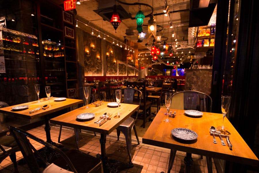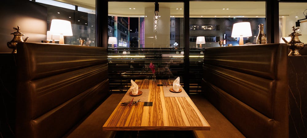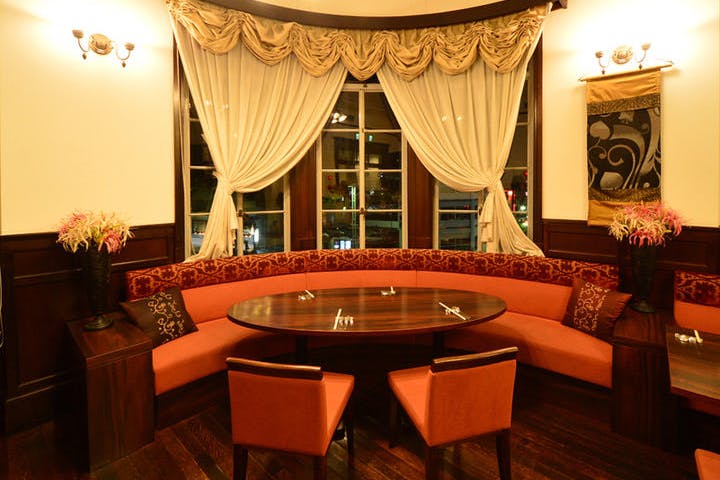 麻布十番から徒歩3分、外苑東通りから一つ入り、落ち着いた場所に赤いネオンサインが目を引く「エーオーシー 麻布十番」。店内は石造りの壁にトルコやモロッコのランプ、赤いソファーシートにビーズや刺しゅうのクッション、繊細で伝統的な工芸品がラグジュアリー空間を演出してくれます。広いメインダイニングには、お一人でも気軽に楽しめるカウンター席、お客様の人数によりアレンジ可能なテーブル席、心地よい風を感じるテラス席をご用意。デートや女子会に、各種パーティーにも様々なシーンでご利用頂けます。
