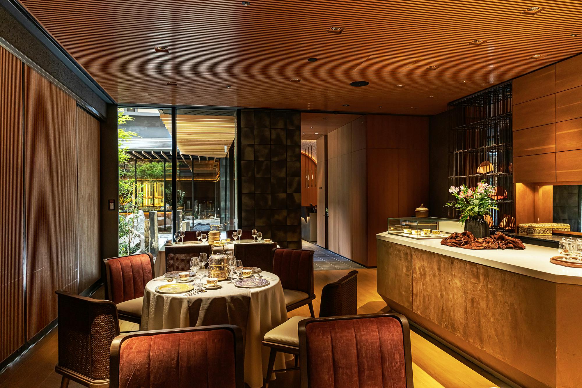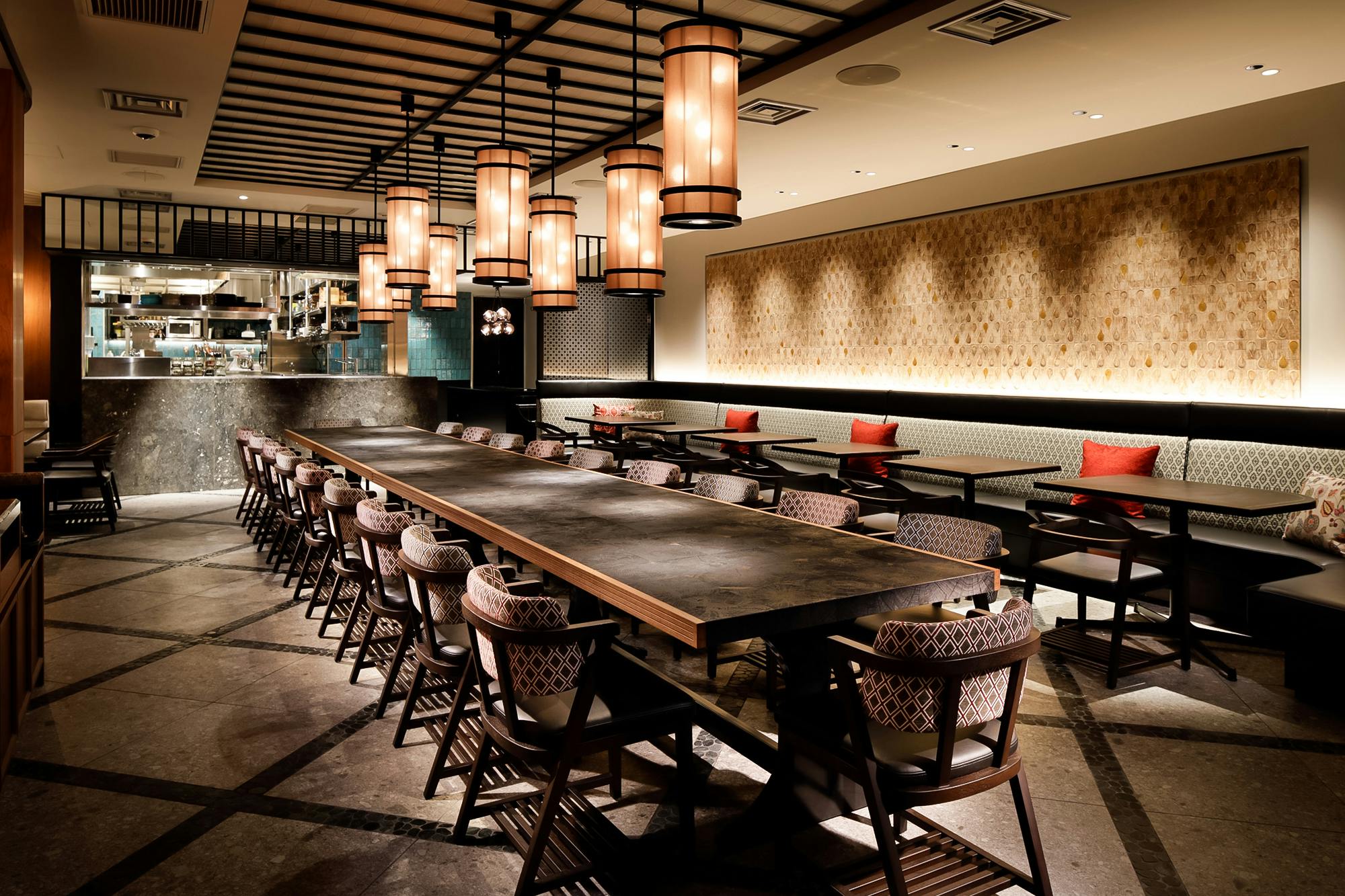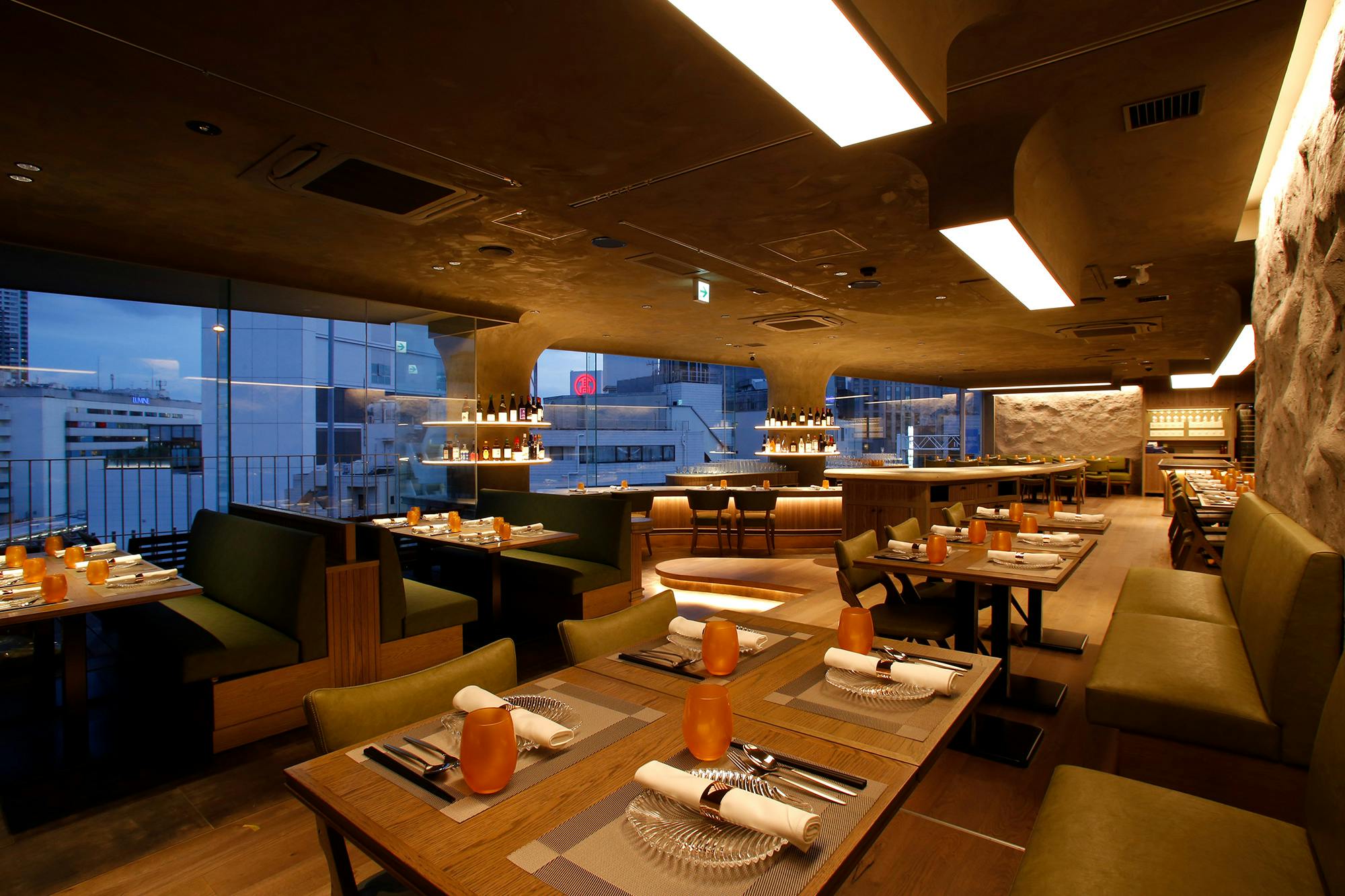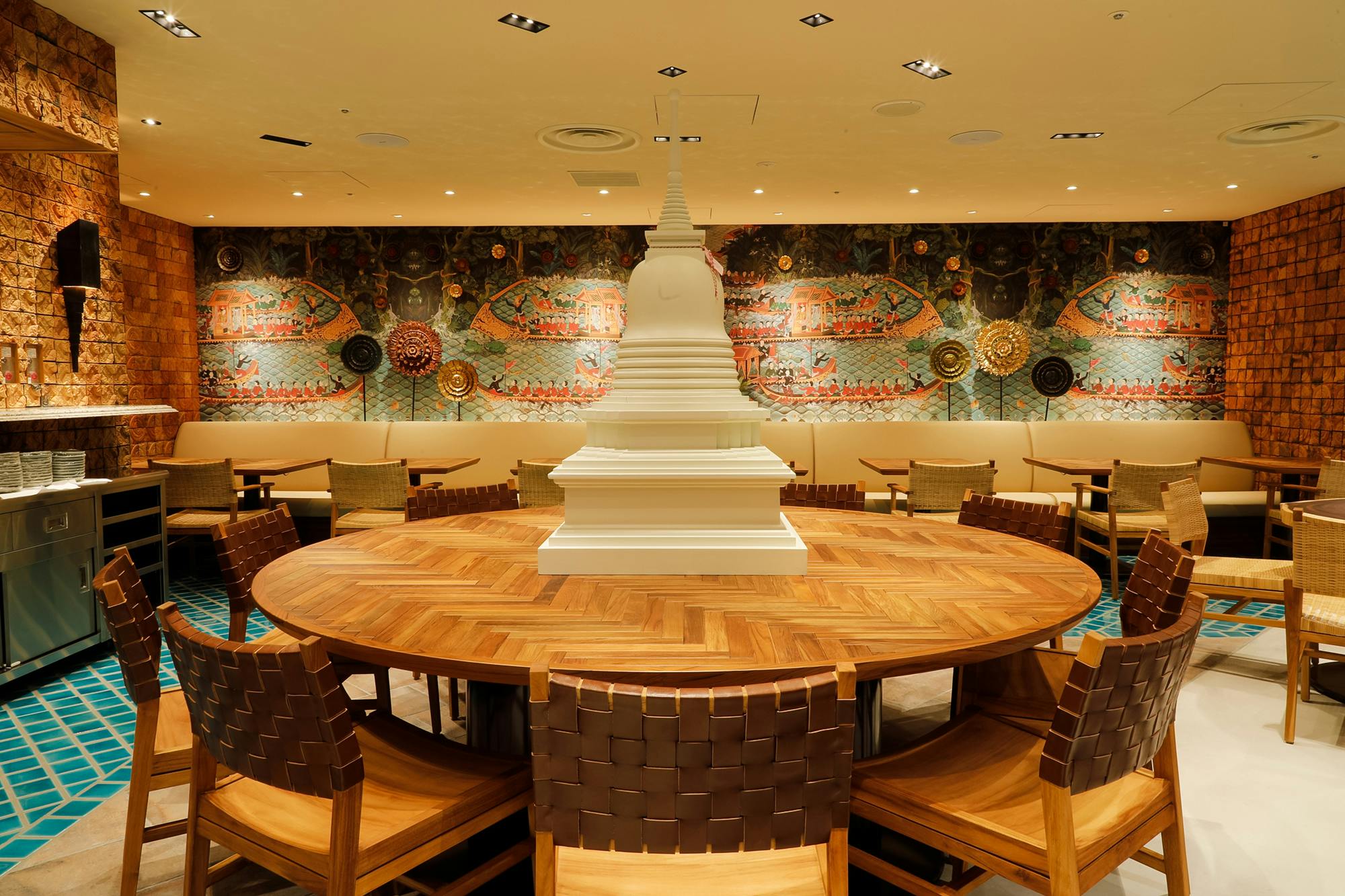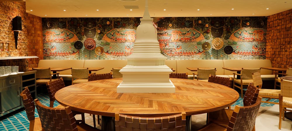 東京駅直結の丸の内ビルディング35F、エントランスに足を踏み入れた瞬間、そこはまるでアジアを旅する異空間が広がります。オープンキッチンから届く匂いと熱気は灼熱の地タイを思わせ、オリエンタルな空気を吸い込むと柔らかな時間がゆっくりと流れはじめます。大きな窓ガラスからは昼には明るい日差しが入り、夜は都心が一望できる店内で優雅なひとときをお過ごしいただけます。そして、会食や接待、ちょっとしたパーティーなどに最適な半個室もご用意。さらに大型パーティーなどの貸切利用まで、様々な目的でご利用いただけます。