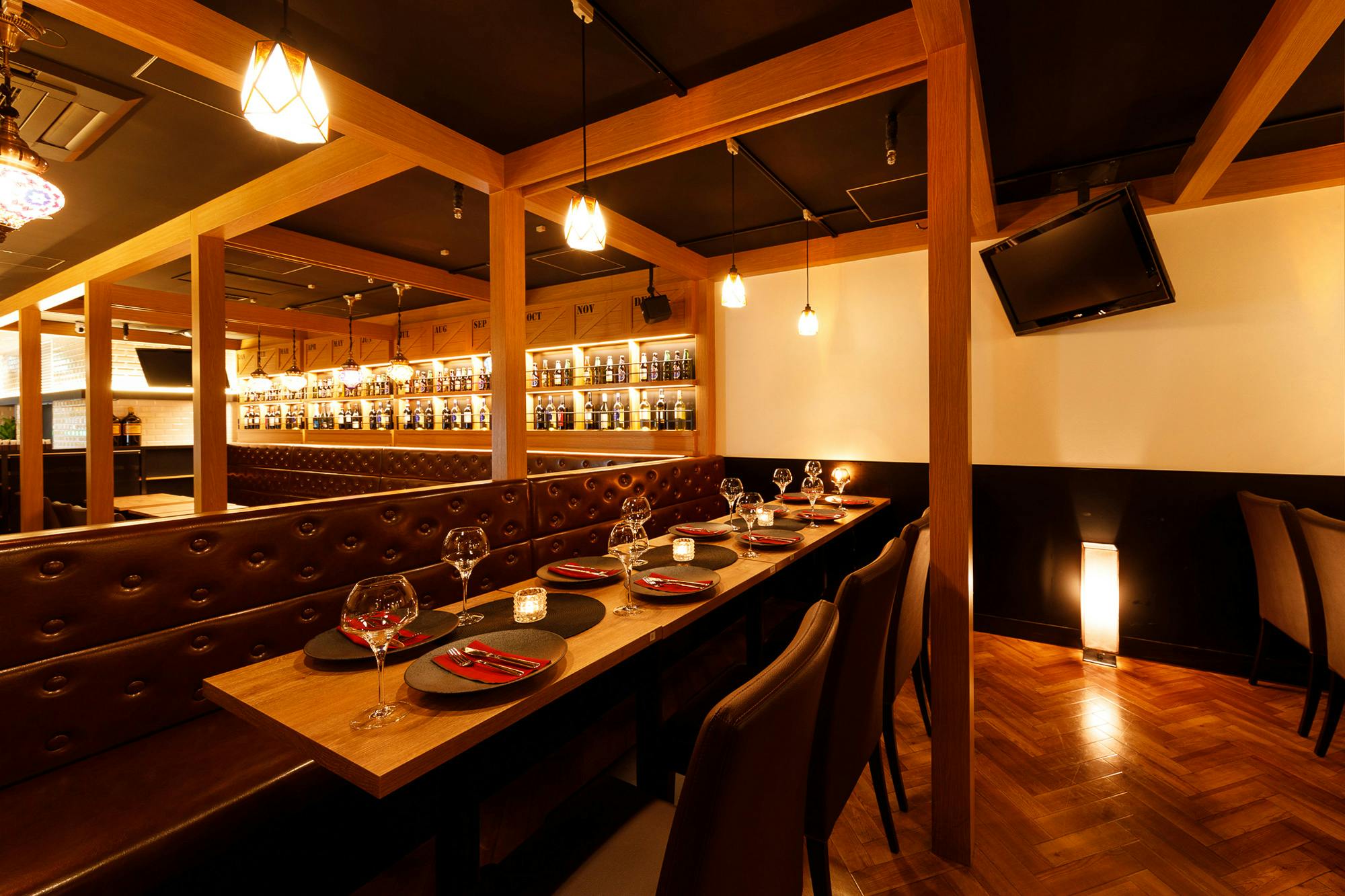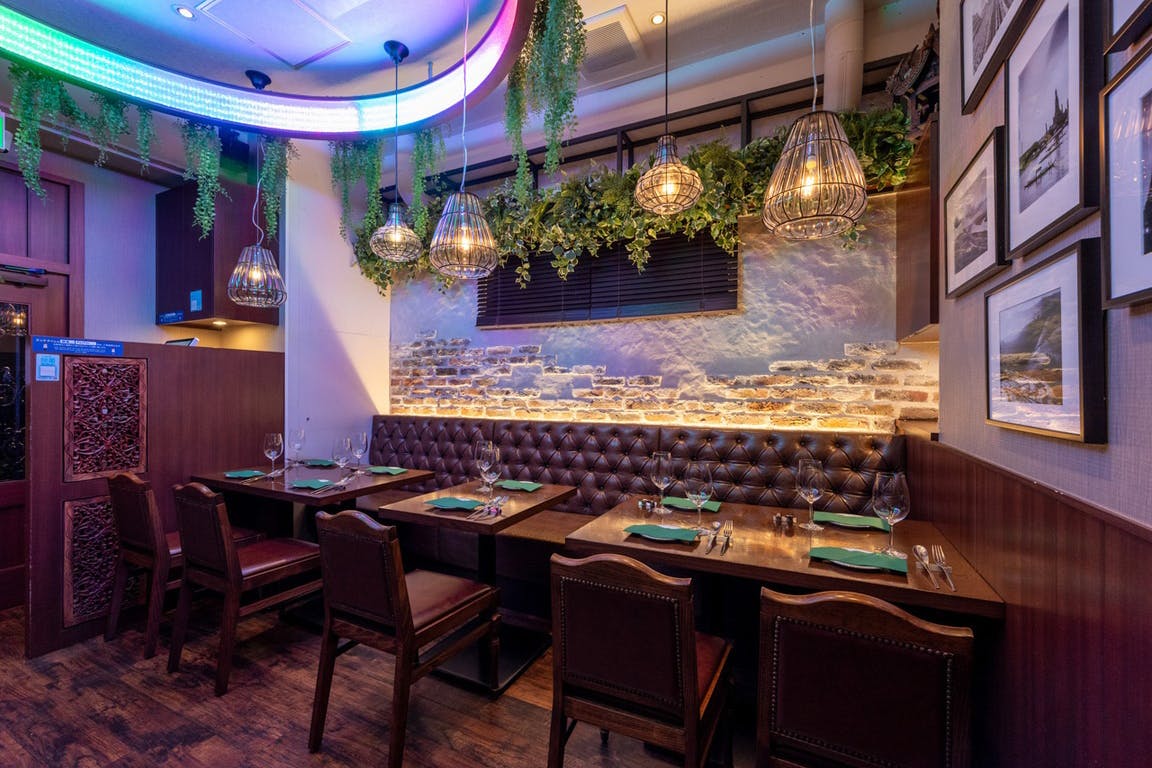 店内は間接照明あふれるカジュアル&モダン調が特徴となってます。優雅でお洒落な空間が異国情緒溢れる素敵な店内です。