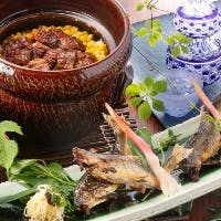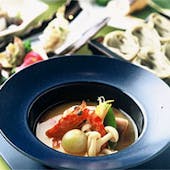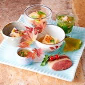 【オプション】 ・+日本ワイン・日本酒ペアリング 6,800円 ・+ティーペアリング 3,800円 特別なお食事に合わせて日本各地の銘酒や お茶の魅力をお楽しみくださいませ。 ■乾杯シャンパン1杯付 日本各地の素材を厳選し、素材の旨味をお楽しみいただく月替わりのコースをご用意いたしました。里山の旬をお届けする素材を取り寄せ、和食、洋食問わず様々な技法を用いてオリジナルアレンジしたスペシャルコースです。 ディナー 11,700円9,000円(23%OFF)