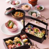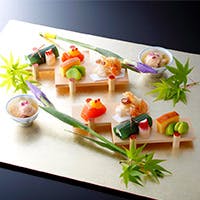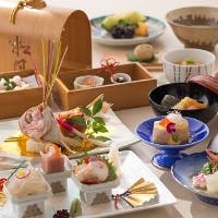 和食の基本を崩すことなく、洋食の要素も取り入れた見た目にも美しい料理をご用意。また、和食と相性の良い日本のワインを約100種類揃え、料理とのマリアージュをお楽しみいただけます。匠の技が光る和食の世界をお楽しみください。