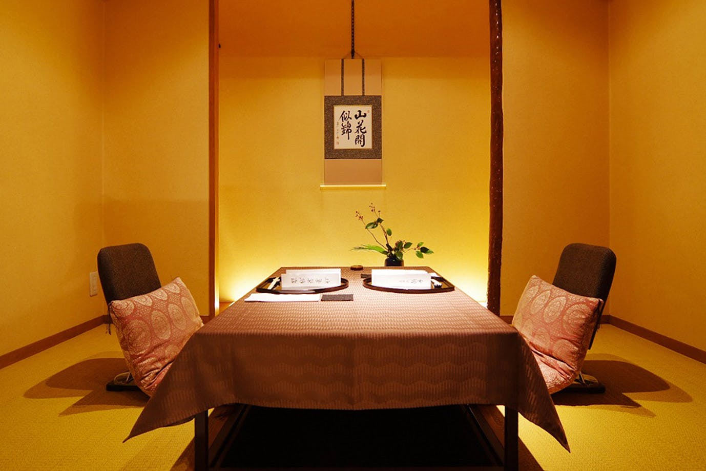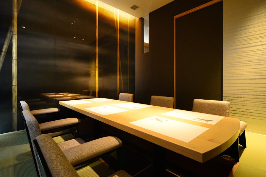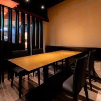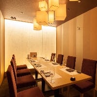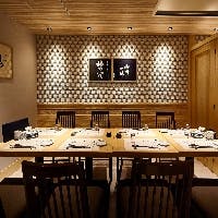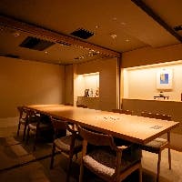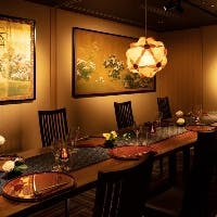 ビジネスシーンや晴れやかなお祝いの席などにも最適な個室は、最大16名様までご利用可能。どなたでもご利用いただきやすい、テーブル席の個室です。ご接待向きのお料理、記念日をお祝いする演出など、シーンに合わせてご提案いたします。海外からのお客様をお招きする場としても、大変喜ばれます。