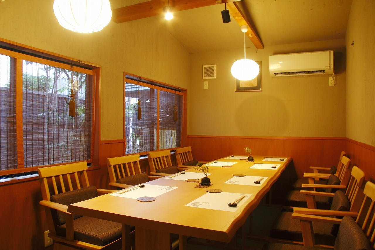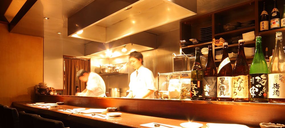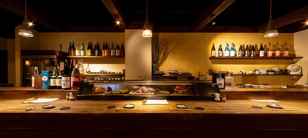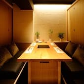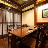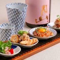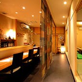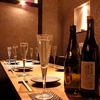 お料理に合わせて、日本酒・焼酎・ウイスキーなどを取り揃えております。 コースはすべて3時間の飲み放題付きとなっており、銘柄酒を含むプレミアム飲み放題へは追加料金にて変更が可能です。 また、2時間の飲み放題単品プランもご用意しており、お食事とあわせて気軽にご利用いただけます。 店内には個室も備えており、会社帰りのお食事から会食、宴会、接待まで、さまざまなシーンに対応しております。