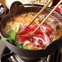 【黒毛和牛のすき焼き鍋コース】黒毛和牛すき焼き、天ぷらや自家製うどん・2時間飲み放題+30分延長!