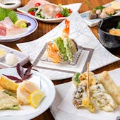 仕入れ先から直送される海鮮食材を使用し、刺身や寿司、天ぷら、炭火焼など、さまざまな和食でご提供しております。 雲丹やいくら、マグロ、ホタテなど、季節や仕入れ状況に応じた食材をお楽しみいただけます。 料理に合わせて、日本酒を中心としたお飲み物もご用意しております。 コースメニュー限定のお料理もあり、用途に応じたお食事が可能です。 店内は個室を備えており、会社帰りのお食事から会食、接待、宴会まで、幅広いシーンでご利用いただけます。 全コースには飲み放題が付いており、落ち着いた空間でゆっくりとお過ごしいただけます。