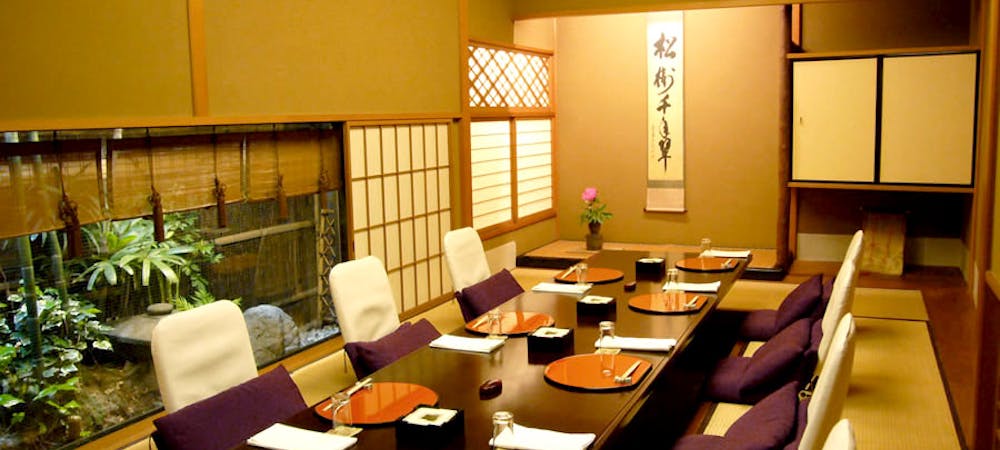 新橋駅近くにひっそりと佇む当店は、四季折々の食材を様々な調理方法にてご堪能いただけます。京風和食に炭火焼き、天婦羅や鍋、寿司に至るまで、季節の流れを感じながら和食の真髄をお楽しみください。全コースが生ビールを含む3時間飲み放題付で、銘柄酒もご用意も多数ございます。会社帰りの飲み会から宴会や接待、デートまで、シーンを問わずご利用に最適な完全個室空間にて、ゆったりと至福のひとときをお過ごしください。 ディナー