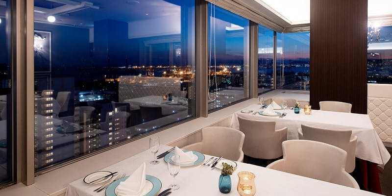 「煌めく神戸の夜景と共に楽しむ美食の旅」特別な夜にふさわしい、唯一無二の特等席で贅沢なひとときを。地産地消の厳選食材と革新的な調理技術が融合した料理が、驚きと感動をもたらします。ラグジュアリーな空間で、心躍る至福のディナーをお楽しみください。