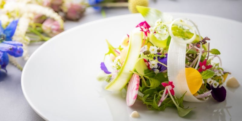 素材本来の旨味を生かしたバランスの良いコース料理かが好評で、ボリュームのある前菜からメイン料理に至るまで目でもお愉しみいただけます。地元の上質な食材をふんだんに使用した色鮮やかなお料理を味わいながら優雅な時間をどうぞ。