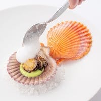 海老を海老以上に。あわびをあわび以上に・・・ 焼くことの意味。それは水分をとばし、旨味を凝縮させ、焼色をつけ風味だたせること。刺身のほうがおいしいとは言わせません。生で食べられる食材にわざわざ火を通して食べる贅沢。冬はフルフルにふるえるほどの鱈の白子、磯の香りが口に広がる瀬戸内の牡蠣、春は香り高い明石の桜鯛、しゃきしゃきで弾ける身をもつ車海老、夏はぷりぷりで口の中で踊る明石たこ達がお客様をお待ちしております。