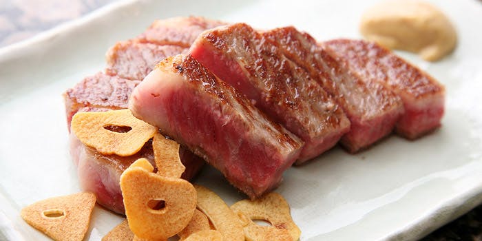 A5ランクの上質な宮崎牛や極上の神戸牛を中心に仕入れ、絶妙な火加減で仕上げます。 噛みしめる度にジュワっと溢れ出す肉汁と旨味、鼻孔をくすぐる芳醇な薫りに思わず笑顔がこぼれる美味しさでございます。