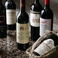 ホテルでのソムリエ(バーテンダー)経験をもつシェフが選ぶおすすめワインは約80種類。色調が濃く香り豊かで滑らかなタンニンを持つボルドー、果実味豊で酸味とのバランスが絶妙なブルゴーニュをはじめチリ、アルゼンチン、オーストラリアなどニューワールドワインを数多く取り揃えております。きっとお気に入りの1本が見つかりますのでお気軽にご相談ください。また日本酒、焼酎、ウイスキー、も豊富にご用意しております。