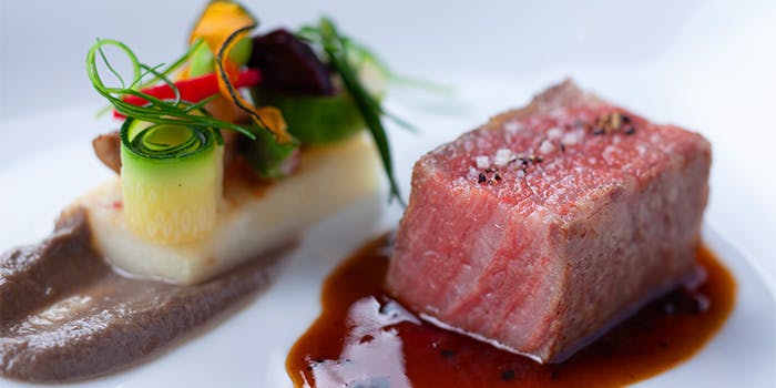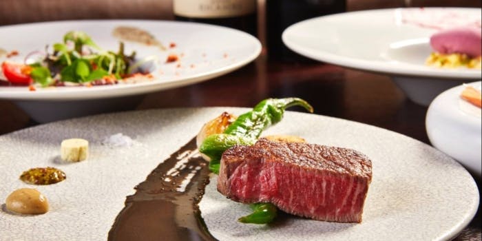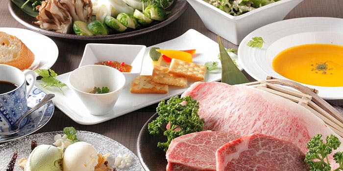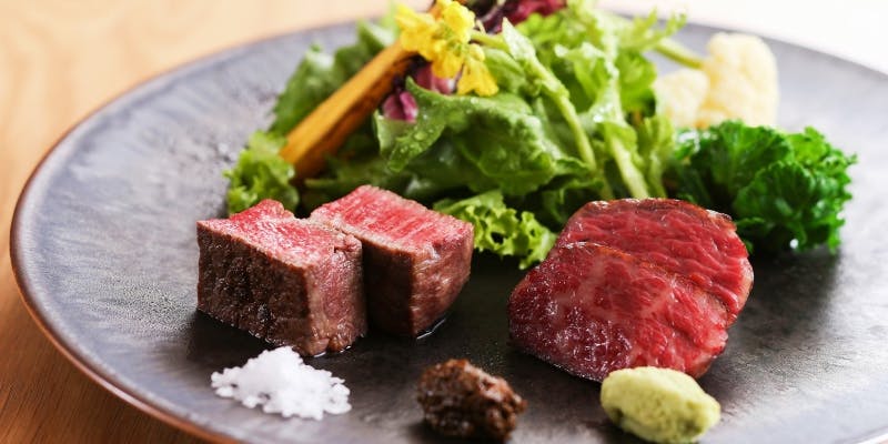 ランチでは、肉汁が溢れだすジューシーなハンバーグや和牛ステーキを、カジュアルなセットや贅沢なフルコースでご案内いたします。ディナーでも極上和牛の旨みを凝縮した、素材にこだわりぬいた、シェフ自慢のコースをお届けします。サラダや海鮮など、アラカルトメニューも充実しております。