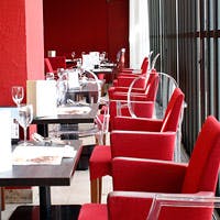 壁、天井、インテリアなど、大きな部分に、日本人女性の肌が一番きれいに見えると言われる赤を採用、高感度な大人たちの社交場として食の時間をドラマティックに演出しています。大きな窓からは神戸の街を望み、お昼は陽光の中でゆったりとランチライムを楽しんでいただけ、夜は街の光を見ながら、美味しい料理とワインを満喫していただけます。