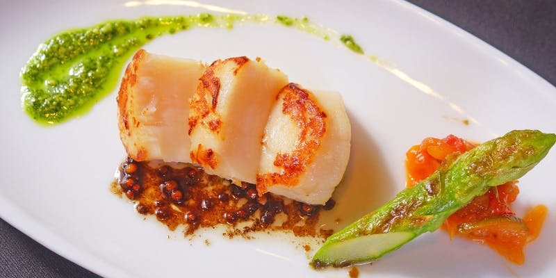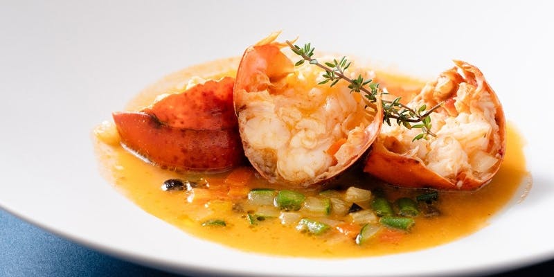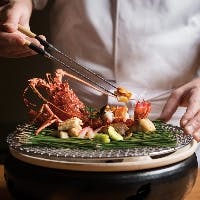 シェフが毎朝市場に行き仕入れる特別なお食材でお届けするおまかせコース全7品+活けオマール海老付き