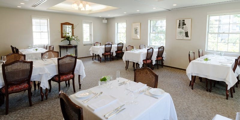 自然に囲まれた癒しの空間。ここでは素材の良さを存分に引き立てたフランス料理をお愉しみいただけます。経験豊富なシェフが織りなす至極の一品一品を五感すべてでご堪能ください。 ランチ 12,100円
