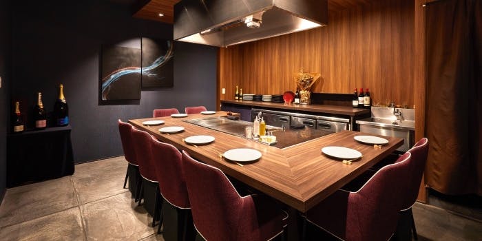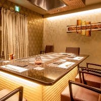 温かみのある照明で落ち着く空間の中、鉄板料理を臨場感溢れるカウンター席で肩を並べながら、大切な方と思い出に残る時間をお過ごしいただけます。また、4名様からご利用いただける個室もございますので、プライベート空間でゆったりとご寛ぎいただけます。