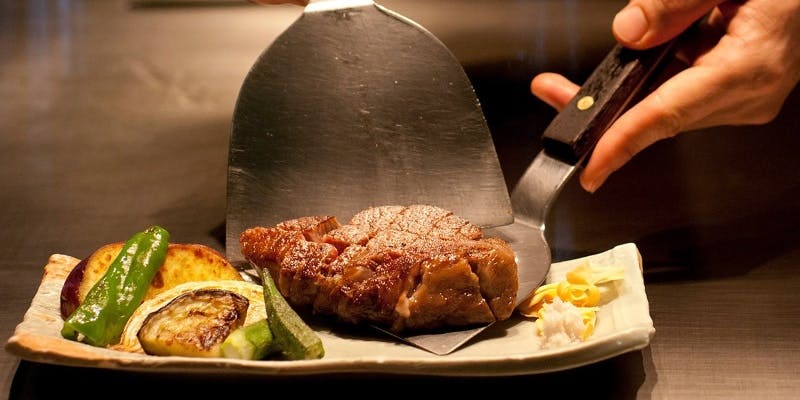A5等級神戸牛赤身ステーキとA5等級黒毛和牛シャートーブリアンステーキを味わっていただけるコースです。さっと火を入れ卵黄ソースで食する当店自慢の「A5等級黒毛和牛霜降りリブロースの焼しゃぶ」、高級食材の活き鮑の鉄板焼きを肝をソースにして召し上がって頂きます。 お肉を引き立てるのは野菜ソムリエ厳選の季節野菜をたっぷり使った彩り鮮やかなコース料理! 全席鉄板焼カウンター!目の前で焼き上げる醍醐味もお楽しみいただけます。 ディナー 20,631円13,800円(33%OFF)