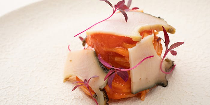 淡路島の由良漁港で水揚げされた鮮魚を主に、地産地消にこだわった旬の食材。 繊細なイノベーティブフレンチとの融合で生み出される真の美味しさをお楽しみください。