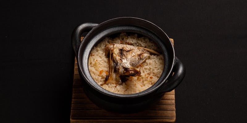 当店名物料理の1つである「鯛めし」は、潮の旨みをしっかり味わっていただくため、具は潔く鯛のみ。南部鉄器でふっくら炊き上げたつやつやご飯に、ホクホクの鯛の身をほぐしてお召し上がりいただきます。鯛めしを目当てにいらっしゃるお客様も多い自慢の一品を、是非ご賞味くださいませ。