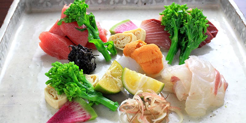 名店で研鑽を積んだ職人が織り成す握りと、丁寧に作られた一品料理をお楽しみください。素材の一つ一つに工夫を凝らし、厳選した目利きでの仕入れも怠らない。基本に忠実に、そしてご来店いただいたお客さまの喜ぶ顔を思い浮かべながら、日々、美味しいものを追及しております。